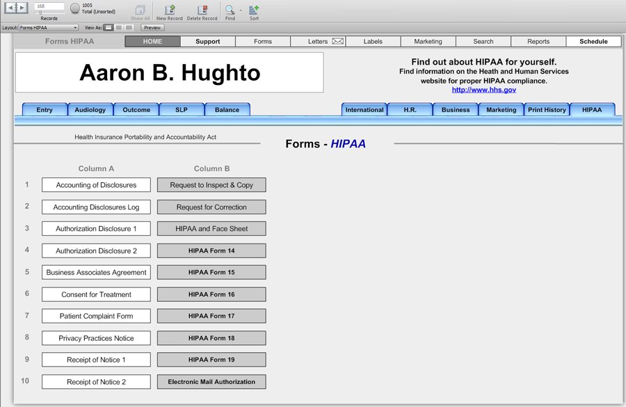 * Note: HearForm offers these forms simply as a guide. It is the responsibility of each individual practice to modify HIPAA forms so that they are within compliance of current laws. HearForm takes no responsibility for the content of these forms, but again simply provides them as a template and a starting point. HearForm maintains no liability for the content of any forms contained within our software.